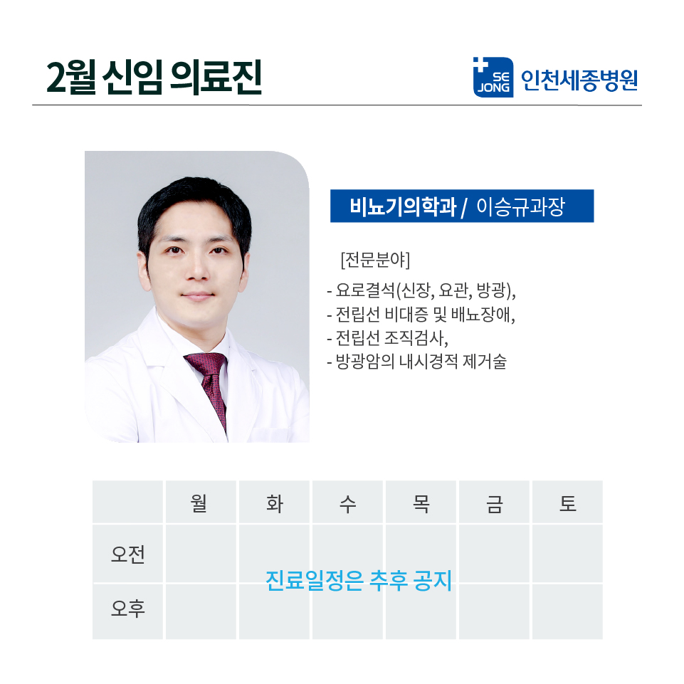 [안내] 인천세종병원 2월 신임의료진
