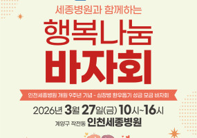 [안내] 인천세종병원 개원 9주년 기념 ‘행복나눔 바자회’ 및 ‘모모들 서예 전시회’ 개최